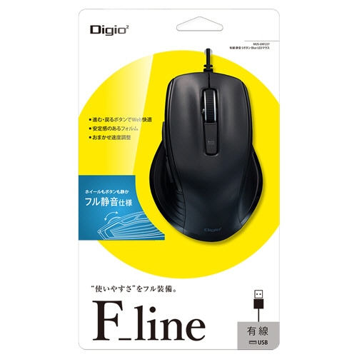 ナカバヤシ F_line 有線静音5ボタン BlueLEDマウス ブラック MUS-UKF227BK 1個