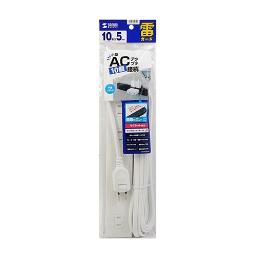●小型ACアダプタが差し込める(差込口ピッチ45mm)10個口、ホワイトの電源タップ。ケーブル長さは5mです。