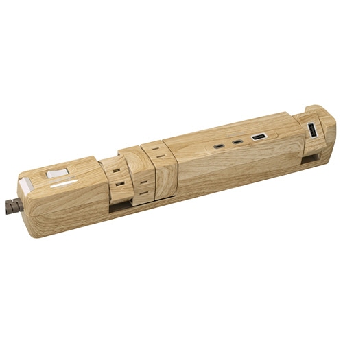 ●両挿し対応AC6個口の電源タップ、ベージュウッドです。