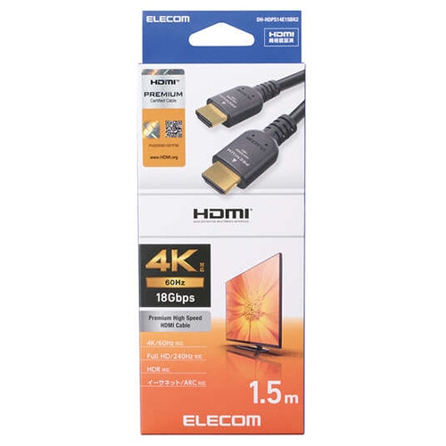 エレコム PREMIUM HIGH SPEED HDMIケーブル ブラック 1.5m DH-HDPS14E15BK2 1本