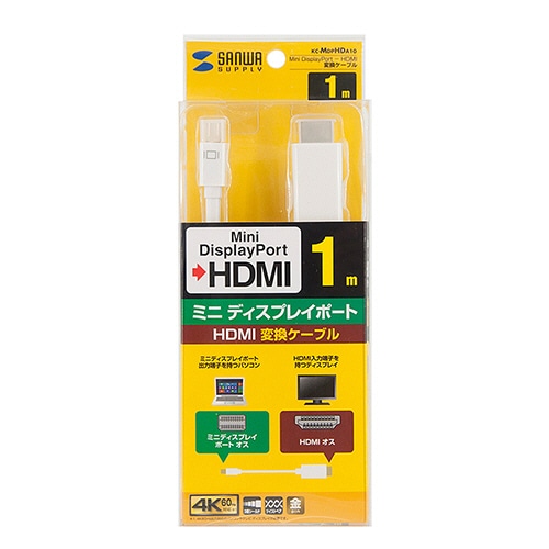 サンワサプライ ミニDisplayPort-HDMI変換ケーブル ホワイト 1m KC-MDPHDA10 1本