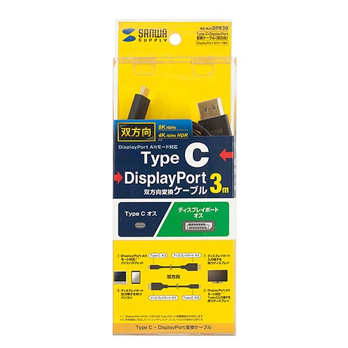 サンワサプライ TypeC-DisplayPort変換ケーブル(双方向) ブラック 3m KC-ALCDPR30 1本