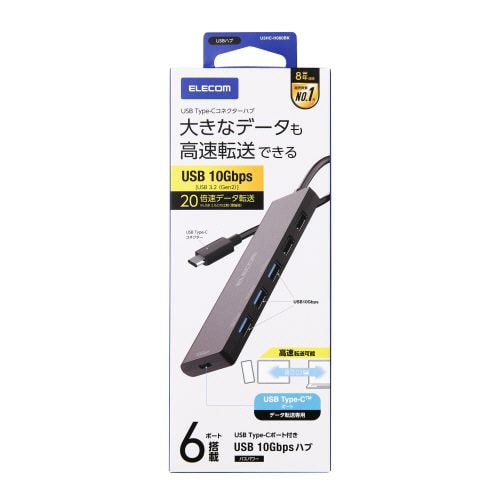 エレコム USB Type-C 6ポートUSBハブ(10Gbps) ブラック U3HC-H060BK 1個
