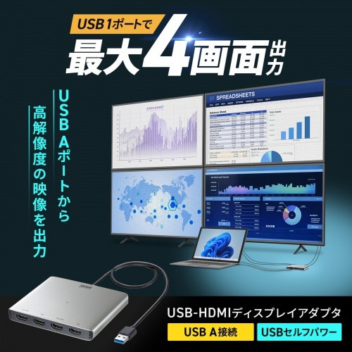 サンワサプライ USB-HDMIディスプレイアダプタ(4画面出力) USB-CVU3HD7 1個