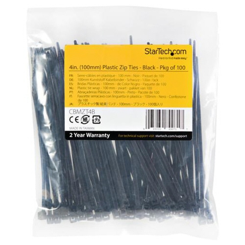 StarTech.com 結束バンド/ナイロンケーブルタイ 幅2.5mm×長さ10cm ブラック CBMZT4B 1パック(100本)