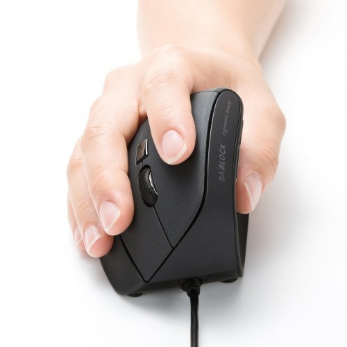 ●人間工学形状で、手首への負担が少ないエルゴノミクスデザインの有線マウスです。