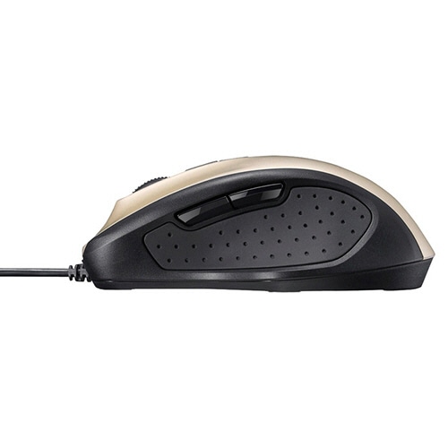 ●わずかな凹凸やホコリにも正確に反応するBlueLEDを搭載したBlueLED光学式マウス、本体色はゴールドです。