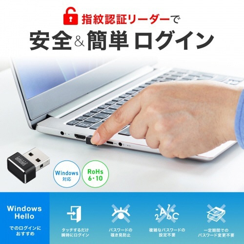 ●Windows専用ドライバーで接続するだけの簡単設定です。Windows 11/10搭載の生体認証機能「Windows Hello」で指紋認証ログインすることができます。