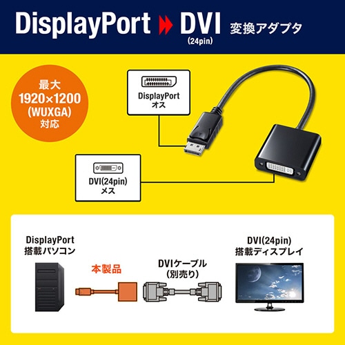 サンワサプライ DisplayPort-DVI変換アダプタ 20cm AD-DPDV04 1個