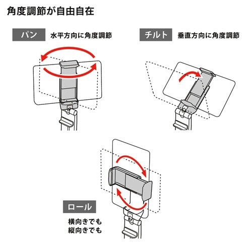 ●回転式で好みの向きに設置でき、自撮り棒としても使えます。