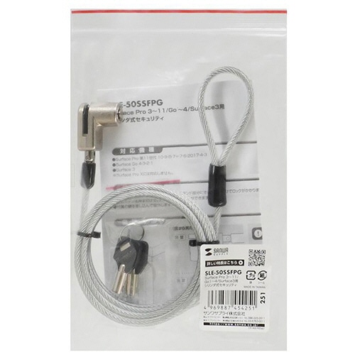 サンワサプライ Surface用セキュリティワイヤー シリンダー錠タイプ SLE-50SSFPG 1個