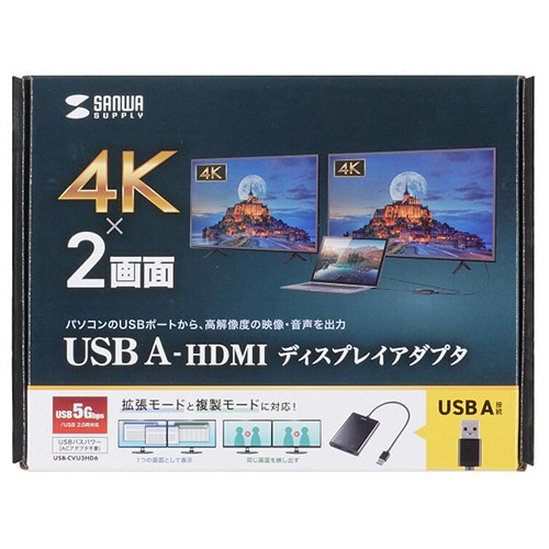 サンワサプライ USB-HDMIディスプレイアダプタ(4K×2画面出力) USB-CVU3HD6 1個