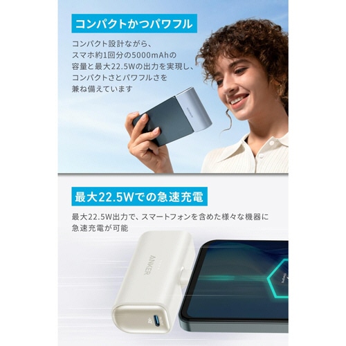 アンカージャパン モバイルバッテリー ANKER Nano Power Bank (5000mAh Built-In USB-Cコネクター) ホワイト A165