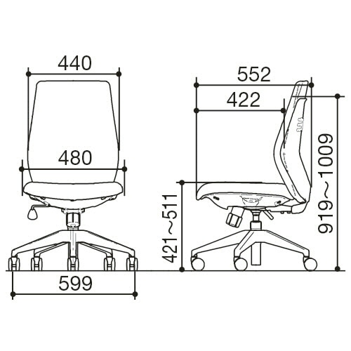 | 商品仕様 | ●タイプ/ハイバック ●背張地タイプ/合成皮革 ●寸法/W599×D552×H919~1009mm ●重量/13.7kg ●色/ブラック ●座面高さ/421~511mm ●座幅/480mm ●脚幅/599mm ●材質/背座張地:PP再生材100%・PVC、クッション:モールドウレタン、脚:PA-G、キャスター:ナイロン ●クッション材質/モールドウレタン ●機能/座ガス上下調節、シンクロロッキング ●肘掛け/なし ●脚部仕様(キャスター/アジャスター)/キャスター ●製造国/日本 ●付属品/六角レンチ ●保証期間/外装・表面仕上げ:1年、機構部・可動部:2年、構造体:3年 ●その他仕様/●クッション厚:45mm |