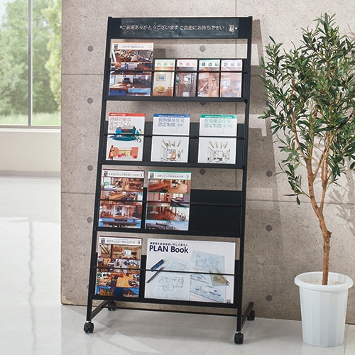 トヨダプロダクツ パンフレットスタンド 4段 ブラック キャスター付 PS-740PK 1台