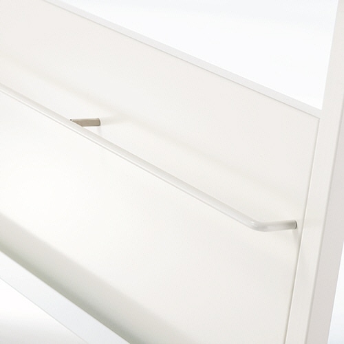 商品仕様 | ●外寸/W740×D420×H1500mm ●重量/10.6kg ●色/ホワイト ●トレー有効内寸/W680×D24×Hmm ●耐荷重(1ポケットあたり)/約3.6kg ●材質/本体:スチール(粉体塗装)、キャスター:ナイロン(ストッパー付2個) ●脚部仕様(キャスター/アジャスター)/キャスター ●必要工具/付属工具とプラスドライバー ●製造国/日本 ●付属品/スパナ、六角レンチ |