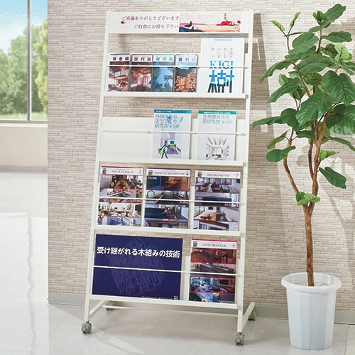 トヨダプロダクツ パンフレットスタンド 4段 ホワイト キャスター付 PS-740PW 1台
