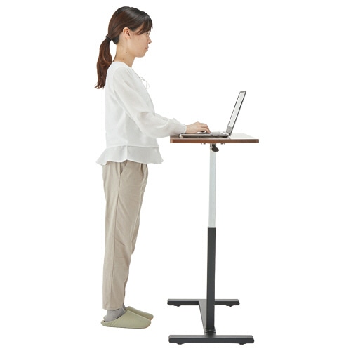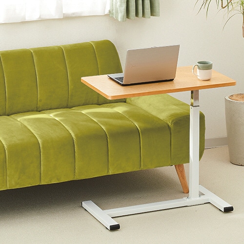 ●レバー操作で天板が上下昇降、これ1台でソファテーブル、ベッドテーブル、デスク、スタンディングデスクとして。