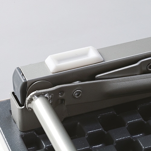 ●脚部+脚部スタッキング時のズレ防止。スタッキングパーツを凸凹の形状にする事により、脚部同士を重ねた収納時にズレを防止します。