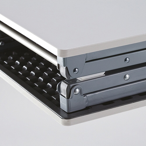 薄型樹脂天板で軽量化を実現した折りたたみテーブル。