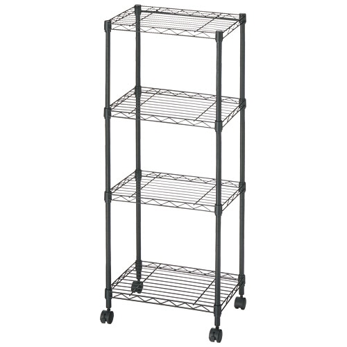 YAMAZEN メタルシェルフ 幅440×奥行305×高さ1090mm 4段 キャスター付 ブラック OKM-10434CJH(BK) 1台