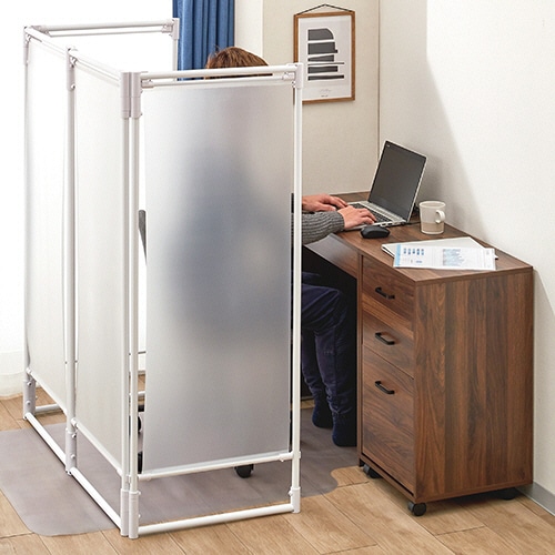 ●4枚を自在に動かせて使い方もいろいろな折りたたみ式パーティション。