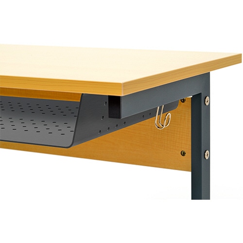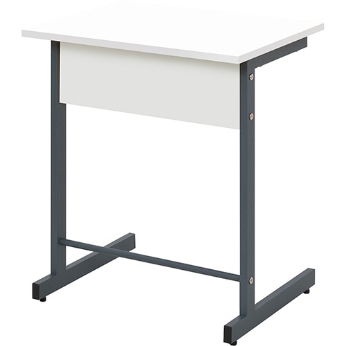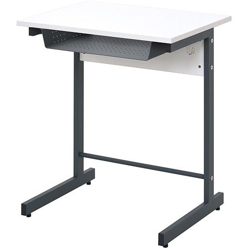 ●ホワイトのスモール研修用デスク。天板幅600mmのコンパクトなデスクで限られたスペースにたくさん置け、天板下に教材などを収納できるラックがあります。