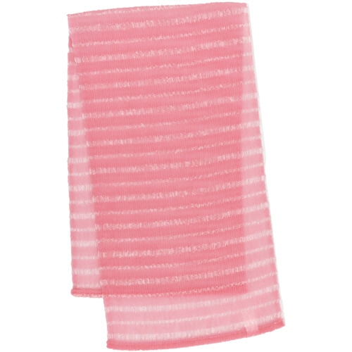 ●ふつうの固さのナイロンボディタオル、色はピンクです。