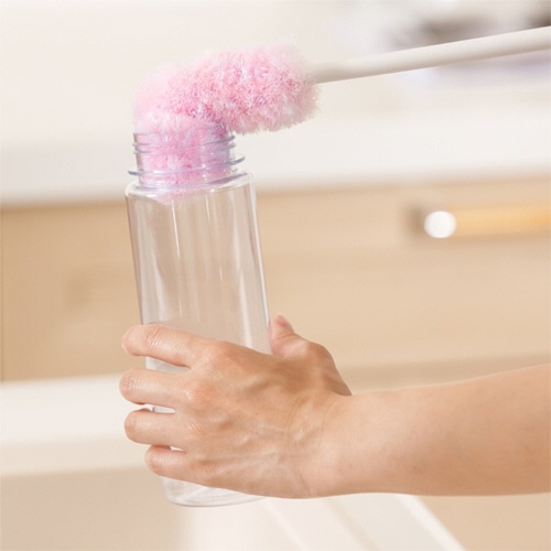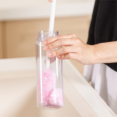 ●ふさふさ網目繊維とブラシのW効果でフッ素加工も傷つけずに隅までしっかり洗えるボトルブラシのピンクです。