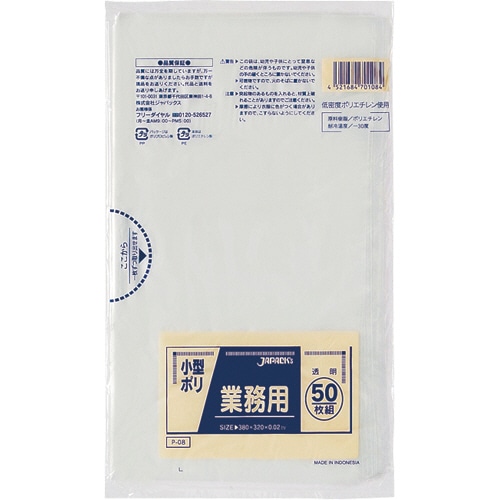 ジャパックス 業務用小型ポリ袋 透明 P-08 1パック(50枚)