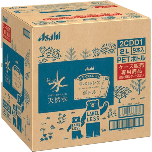 アサヒ飲料 おいしい水 天然水 ラベルレス 2L ペットボトル 1ケース(9本)