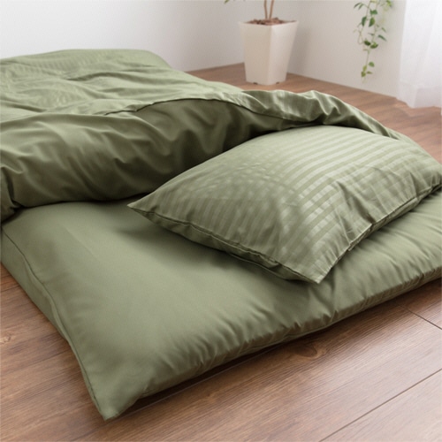 | 商品仕様 | ●セット内容/枕カバー、掛け布団カバー、敷布団カバー ●色/オリーブグリーン ●材質/ポリエステル100%(ピーチスキン加工) ●その他仕様/●サイズ:[掛けカバー]約150×210cm、[敷カバー]約105×215cm、[枕カバー]約43×63cm |