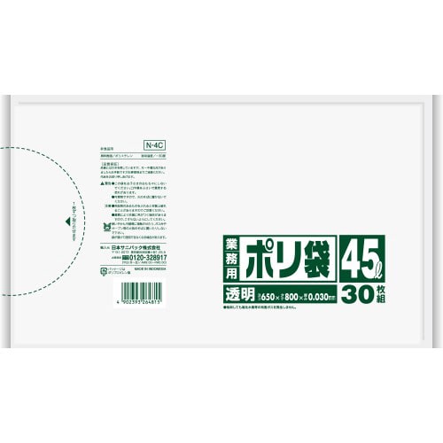 日本サニパック 業務用ポリ袋 透明 45L 0.030mm N-4C 1パック(30枚)