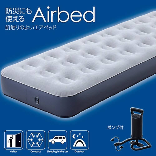 | 商品仕様 | ●サイズ/シングル ●色/グレー ●寸法/幅約730mm×長さ1910mm ●マット面高さ/220mm ●重量/約2.3kg ●材質/本体:塩化ビニル樹脂、表面:レーヨン、ポンプ:ABS樹脂 ●その他仕様/●付属品:ダブルアクションポンプ、リペアーキット |