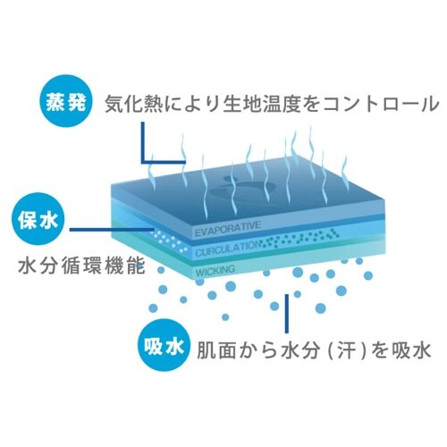 ●フットマーク独自開発の3種類の糸が気化熱を効果的に発生させ冷却効果を発揮します。