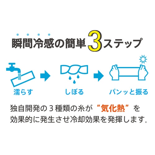 水分を含ませ・しぼり・パンっと振る!簡単3ステップで冷感効果が持続。