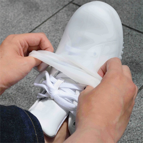 靴にピタッとフィットして雨や汚れから守るシリコン素材のシューズカバー。