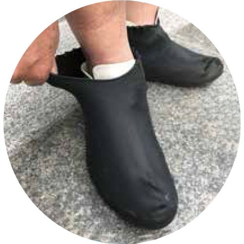 ●履き口のギャザー形状により装着しやすい。