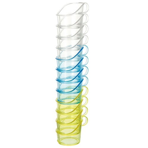 | 商品仕様 | ●使用可能サイズ/7オンス ●寸法/直径約52×高さ約55mm ●色/カラーアソート(クリア・クリアブルー・クリアイエロー×各4個) ●材質/ポリスチレン ●その他仕様/●口径:約60mm |