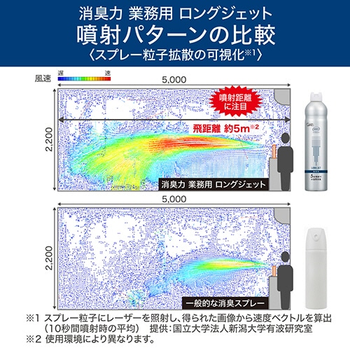 5m先まで消臭成分を噴射。大空間をまるごと効果的に消臭。