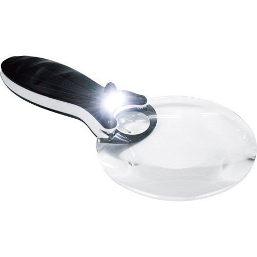 | 商品仕様 | ●倍率/大3倍/小6倍 ●レンズ径/87.5mm ●寸法/W87.5×D33×H208mm ●材質/レンズ:アクリル樹脂、本体:ABS樹脂 ●重量/100g ●その他仕様/●光源:単3電池×2個付 ●備考/※重量は電池を除く。 |