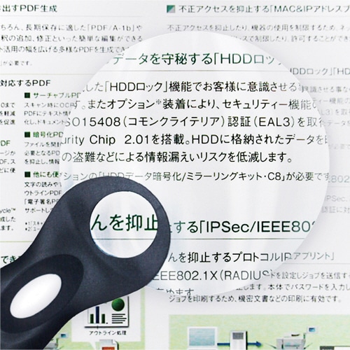 ●レンズにフチがないので、視界を妨げずに違和感なく文字も写真も細かな部分まで見ることができます。