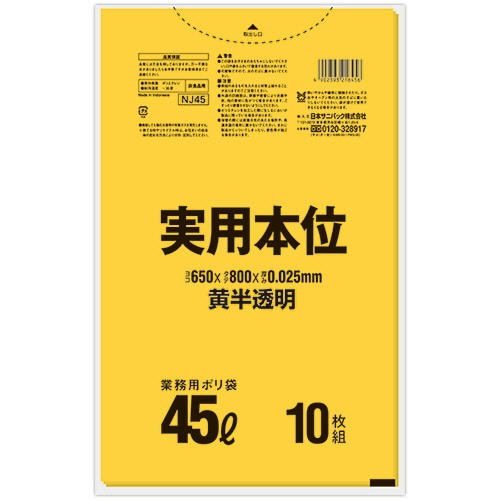 日本サニパック 実用本位ポリ袋 黄半透明 45L NJ45 1パック(10枚)