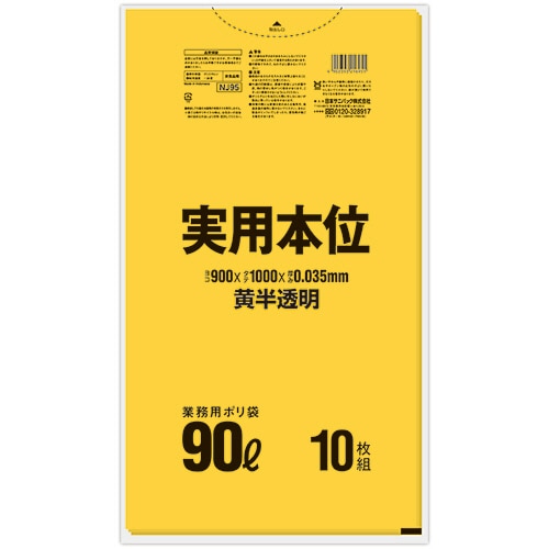 日本サニパック 実用本位ポリ袋 黄半透明 90L NJ95 1パック(10枚)