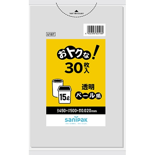 日本サニパック おトクな!ゴミ袋 透明 15L 0.020mm U18T 1パック(30枚)