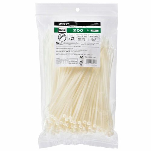 オーム電機 ロックタイ 200mm 白 LT-200W300WH 1袋(300本)