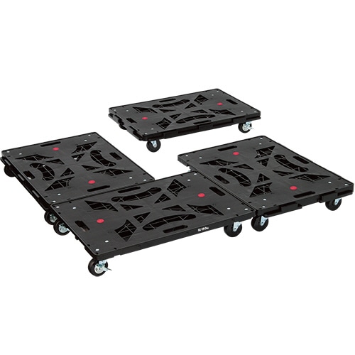 大きな積載面で運搬効率アップ、4台連結でパレットサイズの台車に!