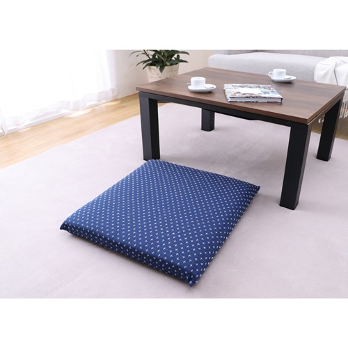 | 商品仕様 | ●色/ネイビー ●寸法/W約55×D59×Hcm ●厚さ/64mm ●材質/[座布団側地]綿55%・ポリエステル45%、[座布団中材]上部・下部 反毛(ポリエステル・毛・その他)、中芯 ポリエステル100% ●洗濯機/側地:可(洗濯ネット使用)、中材:不可 ●その他仕様/●サイズ:銘仙判 ●生産国:側地/インド、中材/日本 |