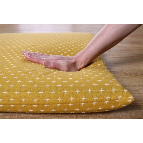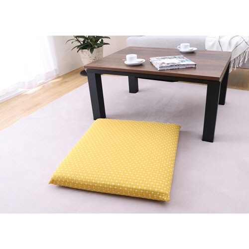 | 商品仕様 | ●色/イエロー ●寸法/W約55×D59×Hcm ●厚さ/64mm ●材質/[座布団側地]綿55%・ポリエステル45%、[座布団中材]上部・下部 反毛(ポリエステル・毛・その他)、中芯 ポリエステル100% ●洗濯機/側地:可(洗濯ネット使用)、中材:不可 ●その他仕様/●サイズ:銘仙判 ●生産国:側地/インド、中材/日本 |
