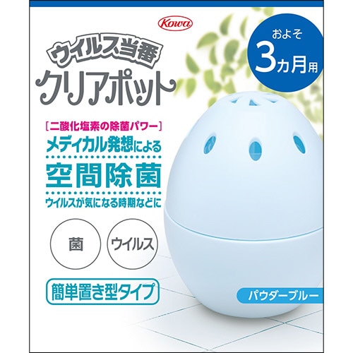 | 商品仕様 | ●内容量/150g ●使用推奨空間/室内 ●持続時間/3~12畳:約3ヵ月 ●寸法/W83×D96×H99mm ●成分/亜塩素酸塩水溶液、二酸化塩素発生調整剤、ガス発生活性化剤、吸水性材料 ●備考/※寸法は個装サイズです。 ※ご利用環境により成分の広がりや持続期間は異なります。 ※本品はウイルスや菌、カビをすべて除去できるものではありません。 |